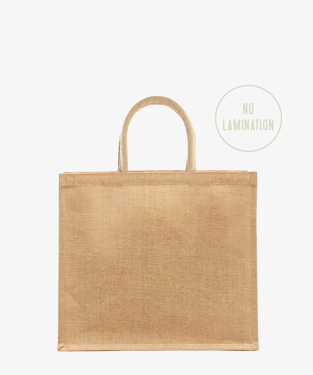 Perfect for shopping. Jute bag with long webbing handles laminated jute shopping bag with long cotton webbing handles. Available in natural jute.
